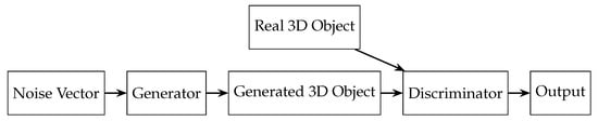 - Discriminator: A 3D CNN that classifies the generated 3D object as either real (from the training dataset) or fake (produced by the generator). It consists of several 3D convolutional layers with batch normalization, leaky ReLU activation functions, and a final fully connected layer with a sigmoid activation function.