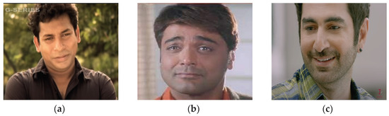 Facial expression with smile exhibiting sad emotion. Here, (a–c) shows smiling faces but the corresponding multimodal data are labeled with sadness.