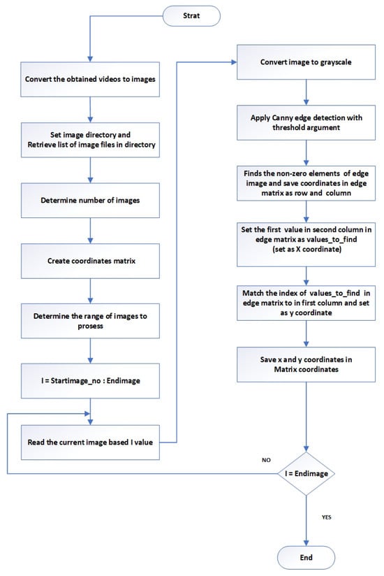 In the initial phase of the process, an approach was adopted to convert the experiment videos into sequences of images. This involved setting up the image directory to retrieve the list of image files in this directory. At this point, the number of images in this directory was counted. An empty matrix was created to store the tip’s coordinates x and y for each image count based on the user’s input. The range of images to be processed (starting and ending images) was determined. The initial image of the selected ones was read and converted to grayscale.