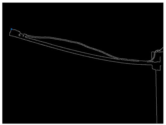Figure 10 displays the original image’s beam tip. In Figure 11, the x and y positions of the detected beam’s tip are represented by blue dots in the edge detection image. These coordinates are stored in a matrix. After saving the file, the user can open it in MATLAB for additional processing and analysis.
