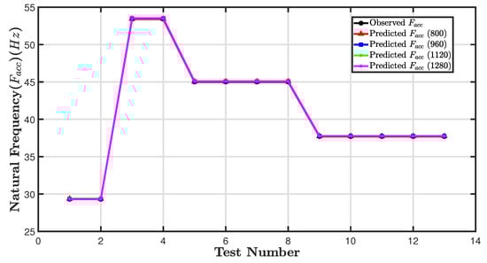 The accelerometer data were initially captured using SignalExpress 2015 software and then saved as a “.txt” file format. These text files, containing both time and acceleration data, were then imported into MATLAB for additional analysis. Within MATLAB, the beam’s fundamental frequency (f) was measured using Equation (1). Herein, and were employed to represent the time of occurrence of the ith and jth peak amplitude, respectively.