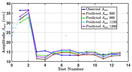 Equation (2) was employed to compute the maximum amplitude of the first-order resonance. This particular amplitude denotes the utmost displacement reached by the system throughout the resonance test. The variable symbolizes the greatest amplitude of acceleration that occurred during the resonance test. Thus, we have the following: