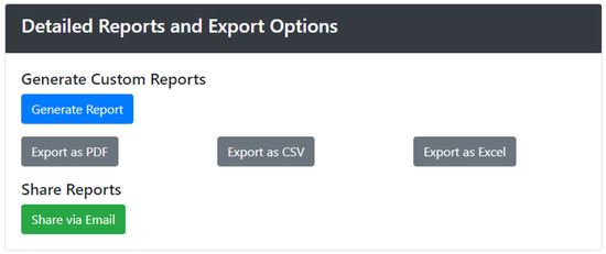 Finally, the Detailed Reports and Export Options section, depicted in Figure 8, is a powerful feature designed to provide users with comprehensive and customizable reports on emergency data. This section allows users to generate in-depth reports that compile critical information and statistics from various parts of the Emergency Statistics dashboard. These reports are invaluable for post-incident analysis, audits, compliance reviews, and strategic planning, offering a structured and detailed view of emergency management performance. Users can utilize the Report Generation tools to create custom reports based on their specific needs. The interface allows for the selection of various parameters, such as date ranges, incident types, response times, and specific locations within the building or campus. Users can choose which metrics and visualizations to include, such as response efficiency charts, evacuation metrics, and historical trends. This customization ensures that the reports are tailored to meet the unique requirements of different stakeholders, whether they are emergency managers, safety officers, or external auditors. In addition to generating reports, the section provides robust Export Options. Users can export the compiled reports in various formats, including PDF, CSV, and Excel, facilitating easy sharing and further analysis. The PDF format is particularly useful for creating professional and easily distributable documents, while the CSV and Excel formats allow for deeper data manipulation and integration with other analytical tools. The export functionality also includes options to share reports directly via email or cloud services, streamlining the process of disseminating critical information to relevant parties. These export features ensure that all necessary data and insights can be accessed, analyzed, and acted upon efficiently, supporting continuous improvement in emergency preparedness and response.