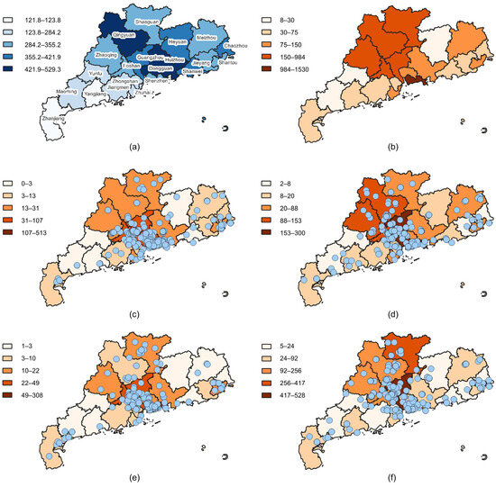 The locations require additional processing to be transformed into actual geographic locations. The application programming interface (API) of the Gaode map (https://lbs.amap.com/ (accessed on 30 June 2024)) was used to ascertain the latitude and longitude coordinates corresponding to all the place names. Addresses that were not located within Guangdong province were excluded from the subsequent analysis. Additionally, address elements with duplicate names were determined based on the information pertaining to the district, city, and province. Ultimately, a total of 5338 posts with location data were obtained, and the latitude and longitude of these addresses were mapped to QGIS [69] for spatial analysis.