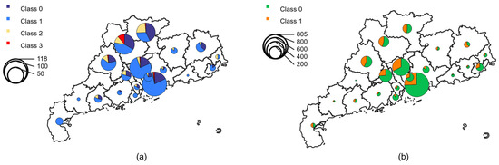 A total of 1482 addresses within Guangdong province were obtained from the 1797 Weibo posts containing check-in information. Of these, 519 were identified as non-duplicates. A total of 19,180 non-check-in Weibo posts were examined, resulting in the extraction of 3856 addresses, 294 of which were unique. The non-check-in data provide a substantial number of locations, rendering it a valuable data source for spatial analysis. In the dataset comprising check-in posts within Guangdong province, the number of multimodal posts (932) exceeds the number of unimodal posts (550). This implies that users frequently capture images when checking in, which enables the observation of the disaster scene. In the non-check-in dataset, the number of unimodal posts (2448) exceeds the number of multimodal posts (1408) due to the higher quantity of unimodal data. In total, there are 2340 multimodal locations and 2998 unimodal locations, which demonstrates that multimodal data are also a significant subject for spatial analysis.