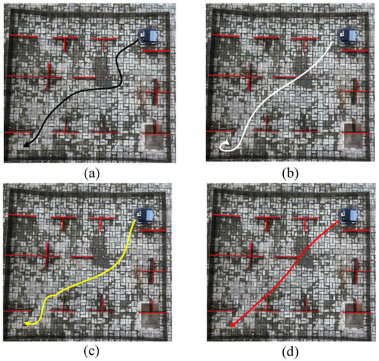 From Figure 13 and Figure 14, it can be observed that over 500 iterations, the differences in extremum values among the four algorithms were small, and their average values were relatively low, resulting in favorable path outcomes. Compared to experiments with 1000 iterations, the experiment duration was shorter with 500 iterations. Based on these observations, 500 iterations were selected for the real-world experiments. This choice allowed the four algorithms to achieve relatively optimal results, while also reducing the overall experiment time.