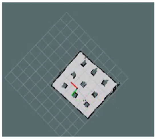 The software system was developed based on the distributed framework of ROS, aiming to achieve motion control of the mobile robot through navigation commands. The experimental site was set up in an outdoor environment, using plastic boards to build fences and obstacles. Considering the hardware capabilities and experimental conditions, the SLAM_HECTOR module framework was chosen to construct the navigation grid. This framework requires relatively low computational resources, while providing high accuracy.