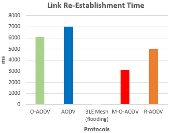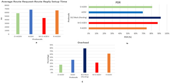 Furthermore, the lower overheads for M-O-AODV will benefit the network by putting less load on it. In addition, the multi-path support feature in the proposed M-O-AODV protocol has given comparable PDR compared to the mesh protocols for improved reliability and network scalability. Consequently, the proposed protocol should be much more scalable compared to existing flooding-based mesh protocols used by BLE.