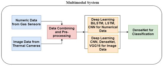 - Novel Multimodal Dataset: The authors have proposed the novel, first-of-its-kind multimodal dataset for gas detection and introduced both the numerical data collected from the gas sensors and the thermal images. The dataset consists of 6400 samples across four classes: fragrance, smoke, aerosol mixture, and smoke–aerosol mixture, and ordinary setting.