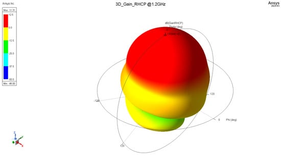 Three-dimensional radiation pattern, RHCP @ 1.2 GHz.