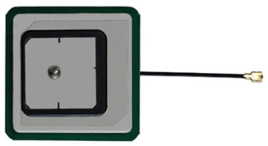 The position-accuracy navigation receivers from different producers were studied using two types of antennas. The first type was a commercial L1/L5 active patch antenna (Figure 11) with the following characteristics:
