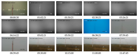 https://cpipc.acge.org.cn/cw/hp/4, accessed on 12 March 2024) and can be downloaded from the website. Among these data, a video and a visibility Excel file are used in our experiments in this paper. The video was captured by a fixed-point rotatable camera. This video records an airport scene from 00:00:26 to 11:47:48 on March 13 (Friday), 2020. This morning is foggy. The size of each frame is