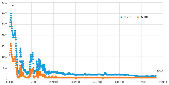 The visibility data represented by RVR and MOR (