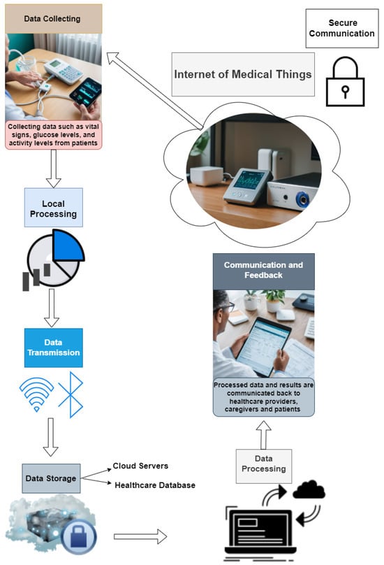 Throughout this entire process, ensuring secure communication is paramount [7,10]. IoMT devices and networks use various security measures, including: