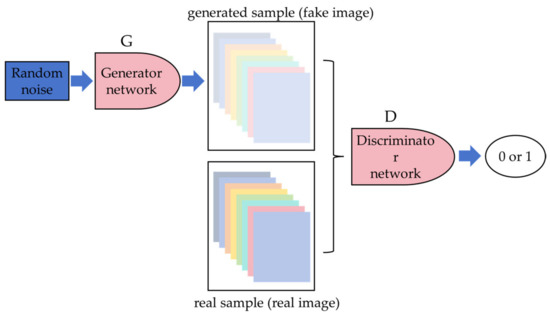- Goodfellow, I.; Pouget-Abadie, J.; Mirza, M.; Xu, B.; Warde-Farley, D.; Ozair, S.; Courville, A.; Bengio, Y. Generative adversarial nets. Adv. Neural Inf. Process. Syst. 2014, 27. [Google Scholar]