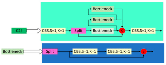 Feature Fusion: the C2f module achieves feature fusion by splicing features from different branches in the channel dimension. The spliced features will contain information from various branches, enriching the feature representation capability.