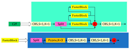 - To design fast neural networks, it is necessary to satisfy the need to reduce redundant computation and memory access while still extracting spatial features more efficiently, and the proposed PConv in the FasterNet [9] network achieves a much higher operating speed than other networks without affecting the accuracy of various visual tasks. Therefore, this paper uses FasterBlock containing PConv to replace the Bottleneck in C2f and achieve lightness for modelability.