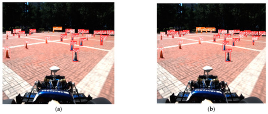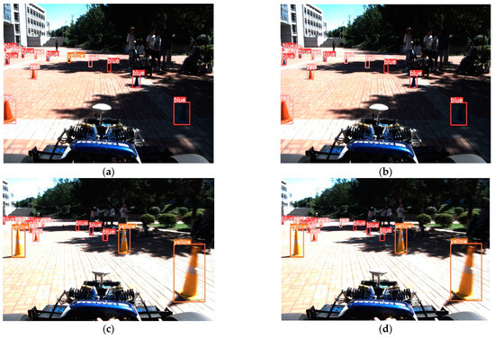 To further verify the effectiveness of different improved methods proposed in this paper for improving the detection model on the racing cone bucket, the enhanced algorithm’s ablation test was conducted on the public data set FSACOCO, and the test results are shown in Table 2.