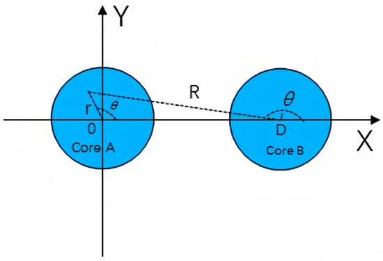 where (R,) is a coordinate system originating at the center of core two, which represents the domain of r > a, as shown in Figure 1. The core pitch is denoted by D. When D >> r holds, radius R can be approximated as .