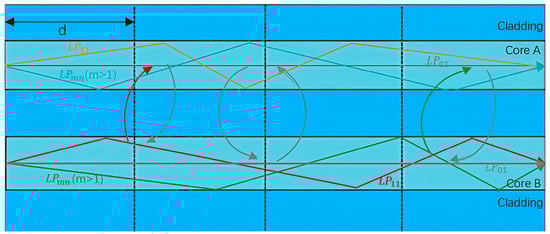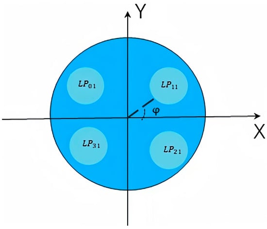 Substituting into (7) to continue the theoretical derivation, we obtain the crosstalk between the modes of . Following this derivation, the crosstalk between the modes of and can be obtained.