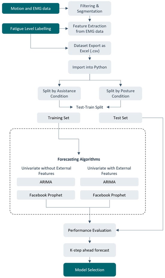 - Hajifar, S.; Sun, H.; Megahed, F.M.; Jones-Farmer, L.A.; Rashedi, E.; Cavuoto, L.A. A Forecasting Framework for Predicting Perceived Fatigue: Using Time Series Methods to Forecast Ratings of Perceived Exertion with Features from Wearable Sensors. Appl. Ergon. 2021, 90, 103262. [Google Scholar] [CrossRef] [PubMed]