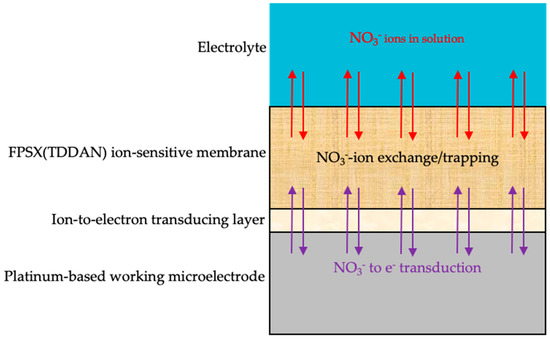Mechanistic scheme of the Pt/IETL/FPSX(TDDAN)/electrolyte NO3−-sensitive structure.