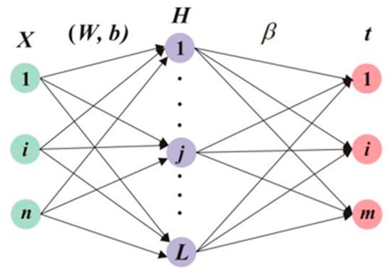 where bi is the bias of the i hidden layer unit; is the output weight; g(x) represents the activation function, usually including sig, sin, hardlim, and three other functions [35]. is the input weight; indicates the inner product of Wi and Xi.