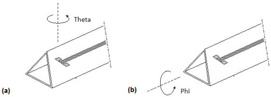 Probe rotations to determine the radiation pattern; (a) in function of Theta; (b) in function of Phi.
