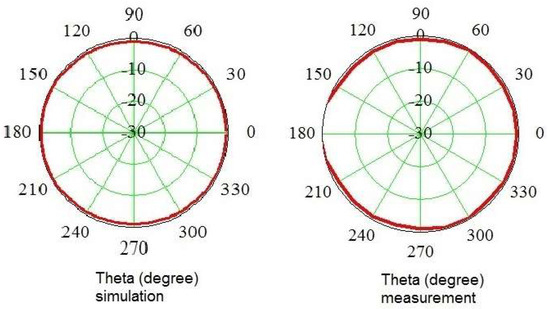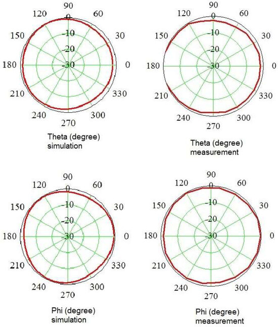 To verify the isotropic characteristics of the probe, the radiation pattern (RP) should be determined. Considering the probe symmetry, the RP should be realized as two functions, i.e., in the functions of Theta and Phi, as shown in Figure 7.