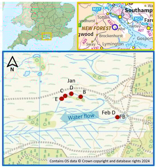 The selected installation site was Dibden Bottom, a valley mire located within the New Forest National Park (Figure 1). Within the site, water flows from upstream in the East, across the peat bog and down to the West.