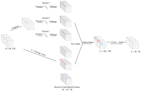 - Zhang, X.; Liu, C.; Yang, D.; Song, T.; Ye, Y.; Li, K.; Song, Y. RFAConv: Innovating spatial attention and standard convolutional operation. arXiv 2023, arXiv:2304.03198. [Google Scholar]