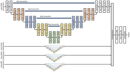 - Ronneberger, O.; Fischer, P.; Brox, T. U-net: Convolutional networks for biomedical image segmentation. In Proceedings of the Medical Image Computing and Computer-Assisted Intervention—MICCAI 2015: 18th International Conference, Munich, Germany, 5–9 October 2015; Proceedings, Part III 18. Springer: Berlin/Heidelberg, Germany, 2015; pp. 234–241. [Google Scholar]