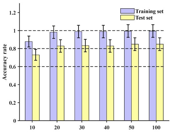 Training was conducted for different numbers of epochs, specifically 10, 20, 30, 40, 50, and 100. At the sample level, the final accuracies of the training set and test set are depicted in Figure 9. These results indicate that the localization accuracy reached 84.9%.