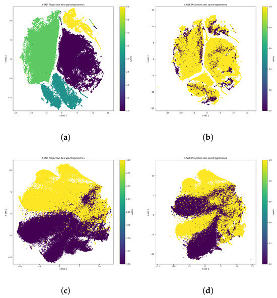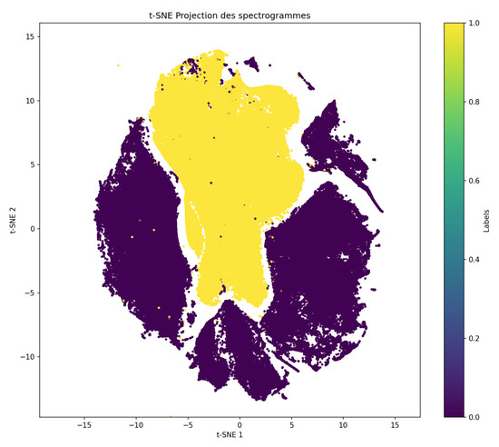 The Bee–NoBee label is not of direct interest for health monitoring but may be used to select uncontaminated audio samples before learning other labels. Appendix A discusses the interest of this label and shows its minimal impact on the performance of Queen–NoQueen classification as an example. Consequently, the Bee–NoBee label was deemed unnecessary, and the focus remained on the Queen–NoQueen label for all files in the BT base.