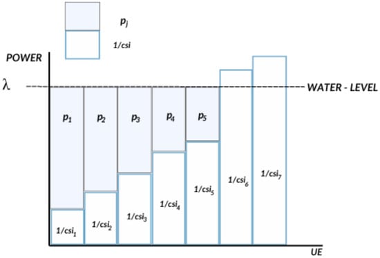 18]. The water-filling method was chosen because it solves the optimization problem described by Equations (