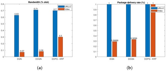 23]. We propose applying a method of eliminating undesired actions to the DDPG agent that consists of penalizing the reward function, i.e., during the training phase, if the actor–network generates an action that does not satisfy the SLA constraints and exceeds transmission power available, the reward will be a value of 0.