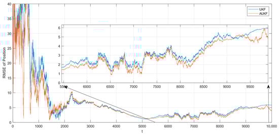 The RMSE of the position at the -th instant () is given by Equation (59):
