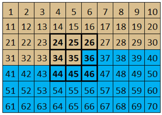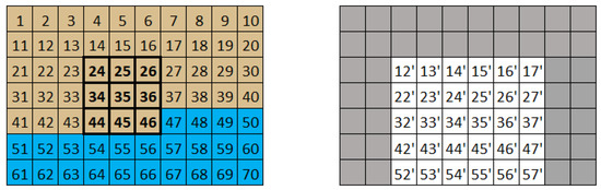 One of the most important aspects in the development of the convolution mask algorithm is the knowledge of the position to be processed. Sequential pixel reception, from left to right and from top to bottom, prevents the filter from being applied immediately after receiving the central pixel of the mask. This is because this operation depends on neighbors that have not yet been received. Figure 1 shows a situation where it is not possible to process the pixel with the value 35 because there are neighbors that have not yet been received.