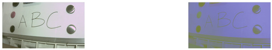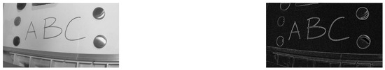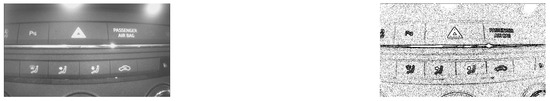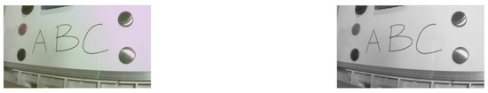 To compare the performance of the FPGA, GPU and CPU, the pre-processing was performed on the FPGA (in VHDL); CPU and GPU (direct implementation in C# of the algorithms designed in VHDL); CPU (using Halcon 18.11 [40]); and CPU (using OpenCV). An image resulting from the FPGA implementation is shown in Figure 12, while the processing times are presented in Table 6. Note that the execution time of the RGB to gray conversion is not included in Table 6. This is because the RGB to gray conversion was only implemented in the FPGA to ensure that the same frame was processed in the CPU and the GPU.