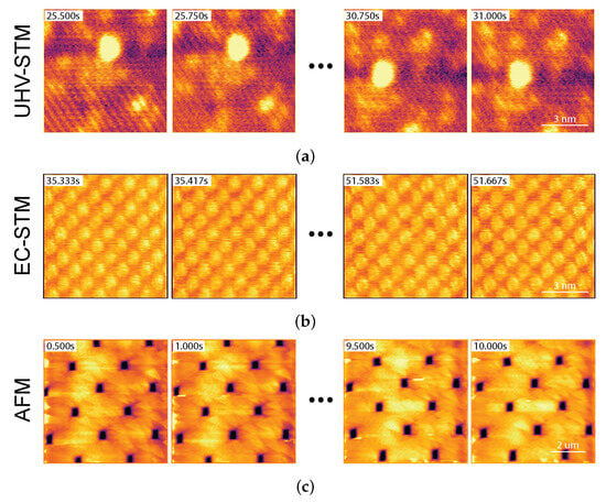 - Yang, Z.; Freund, H.J. High-speed scanning tunneling microscope technique and its application in studying structural dynamics on surfaces. Prog. Surf. Sci. 2024, 99, 100744. [Google Scholar] [CrossRef]