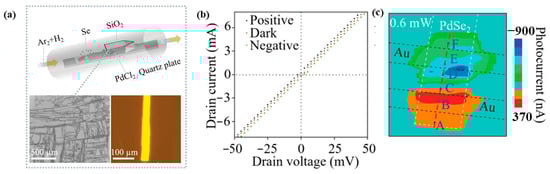 - Li, G.; Yin, S.; Tan, C.; Chen, L.; Yu, M.; Li, L.; Yan, F. Fast Photothermoelectric Response in CVD-Grown PdSe2 Photodetectors with In-Plane Anisotropy. Adv. Funct. Mater. 2021, 31, 2104787. [Google Scholar] [CrossRef]
