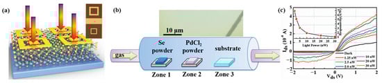 - Zeng, L.H.; Wu, D.; Lin, S.H.; Xie, C.; Yuan, H.Y.; Lu, W.; Lau, S.P.; Chai, Y.; Luo, L.B.; Li, Z.J.; et al. Controlled Synthesis of 2D Palladium Diselenide for Sensitive Photodetector Applications. Adv. Funct. Mater. 2019, 29, 1806878. [Google Scholar] [CrossRef]