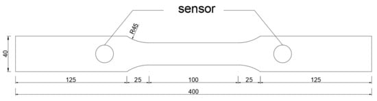 Diagram of the specimen dimensions and the arrangement of the acoustic emission sensors.