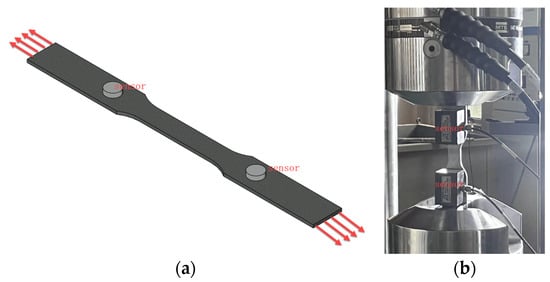 Tensile testing schematic and experimental procedure. (a) Tensile testing schematic; (b) Experimental procedure.