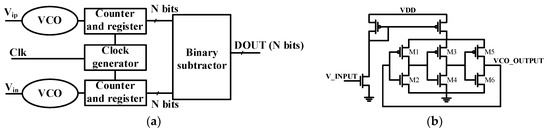 (a) General VCO-based ADC architecture; (b) schematic of the general VCO units.