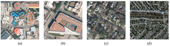 The WHU building dataset covers the city of Wuhan, China, and contains both high-resolution satellite imagery and aerial imagery. The aerial image dataset covers an area of more than 450 km2 and involves 22,000 buildings. The image size is 512 × 512 pixels, and the ground sampling distance is 0.3 m. In this paper, we select the aerial image dataset for the experiments.