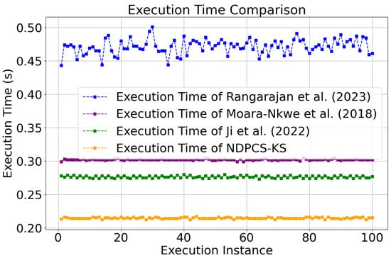 Comparison of execution time. The execution time of NDPCS-KS is compared with that of Rangarajan et al. (2023) [], Moara-Nkwe et al. (2018) [], and Ji et al. (2022) [].