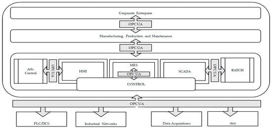 This section aims to provide the reader with the basic overview of fundamental technical concepts of OPC UA required to comprehend the article’s content. OPC UA is an industrial automation standard used to exchange information and configure and control industrial devices and applications from different manufacturers. Figure 3 defines the scope of OPC UA in industrial automation [16].