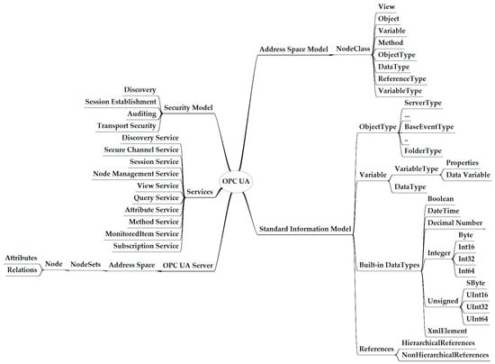 - OPC 10000-3 OPC Unified Architecture—Part 3: Address Space Model (Industry Standard Specification No. OPC 10000-3). Available online: https://reference.opcfoundation.org/Core/Part3/v105/docs/ (accessed on 30 July 2024).