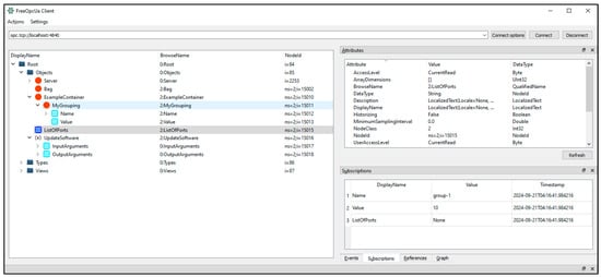 - GitHub—FreeOpcUa/Opcua-Client-Gui: OPC-UA GUI Client. Available online: https://github.com/FreeOpcUa/opcua-client-gui (accessed on 21 September 2024).